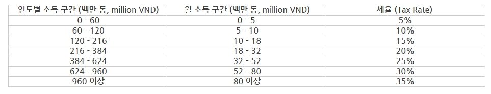 · 베트남 원천 종합과세 소득에 대해 20% 단일 세율